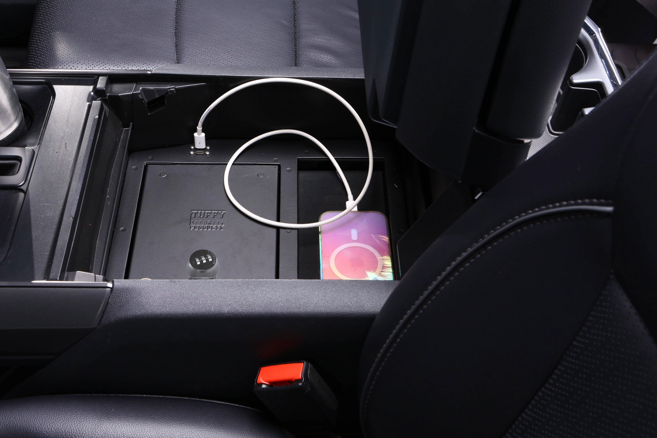 Turn your factory console into real security. This vehicle-specific center console safe for the 2025 Ford F-150 drops directly into the OEM console and locks down what matters—wallets, keys, badges, tablets, and other essentials—without giving up everyday convenience. With exterior dimensions of 11.52" W × 8.9" H × 12.77" L and a spacious 968 cubic-inch interior (11.52" W × 6.59" H × 12.75" L), you get serious, organized room while keeping valuables out of sight and under lock. The low-profile design preserves the clean look of your cabin, rides silent, and opens fast when you need it, making it the smart upgrade for drivers who want more than a flimsy tray or a glove box that anyone can pop. At just 7.2 lb, it’s engineered to be sturdy, tight, and easy to live with—day in, day out.